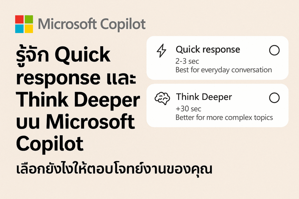 ข่าวไอที & นวัตกรรมรู้จัก Quick response และ Think Deeper บน Microsoft Copilot – เลือกยังไงให้ตอบโจทย์งานของคุณ krukeng / เมษายน 19, 2025 ในยุคที่ AI เข้ามามี […]