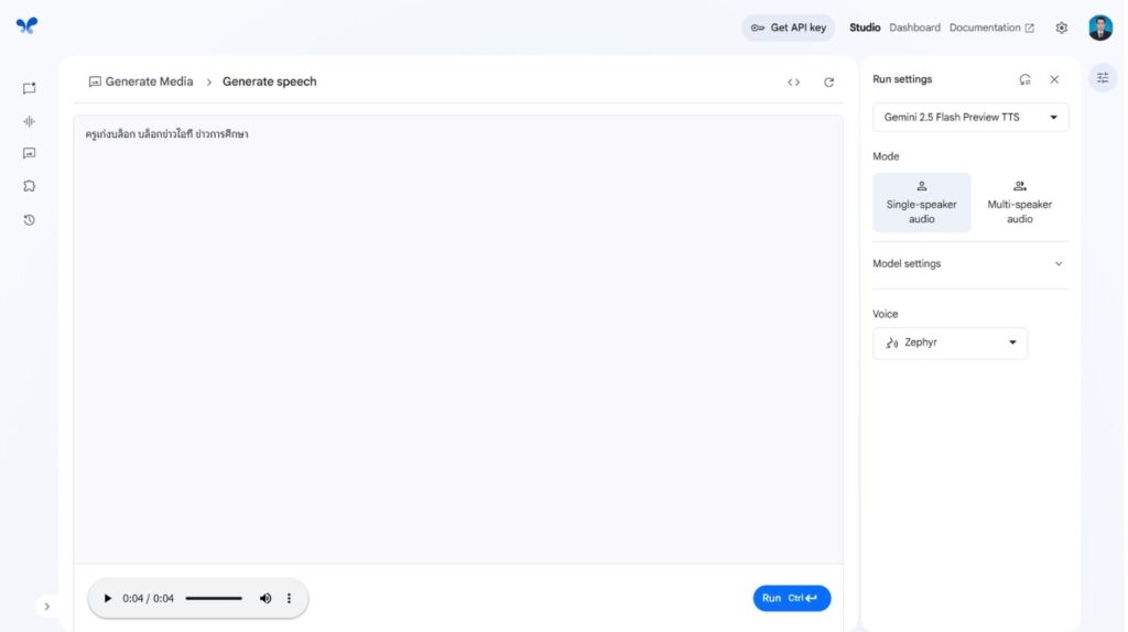วิธีใช้งาน Google AI Studio เพื่อสร้างเสียงภาษาไทย
